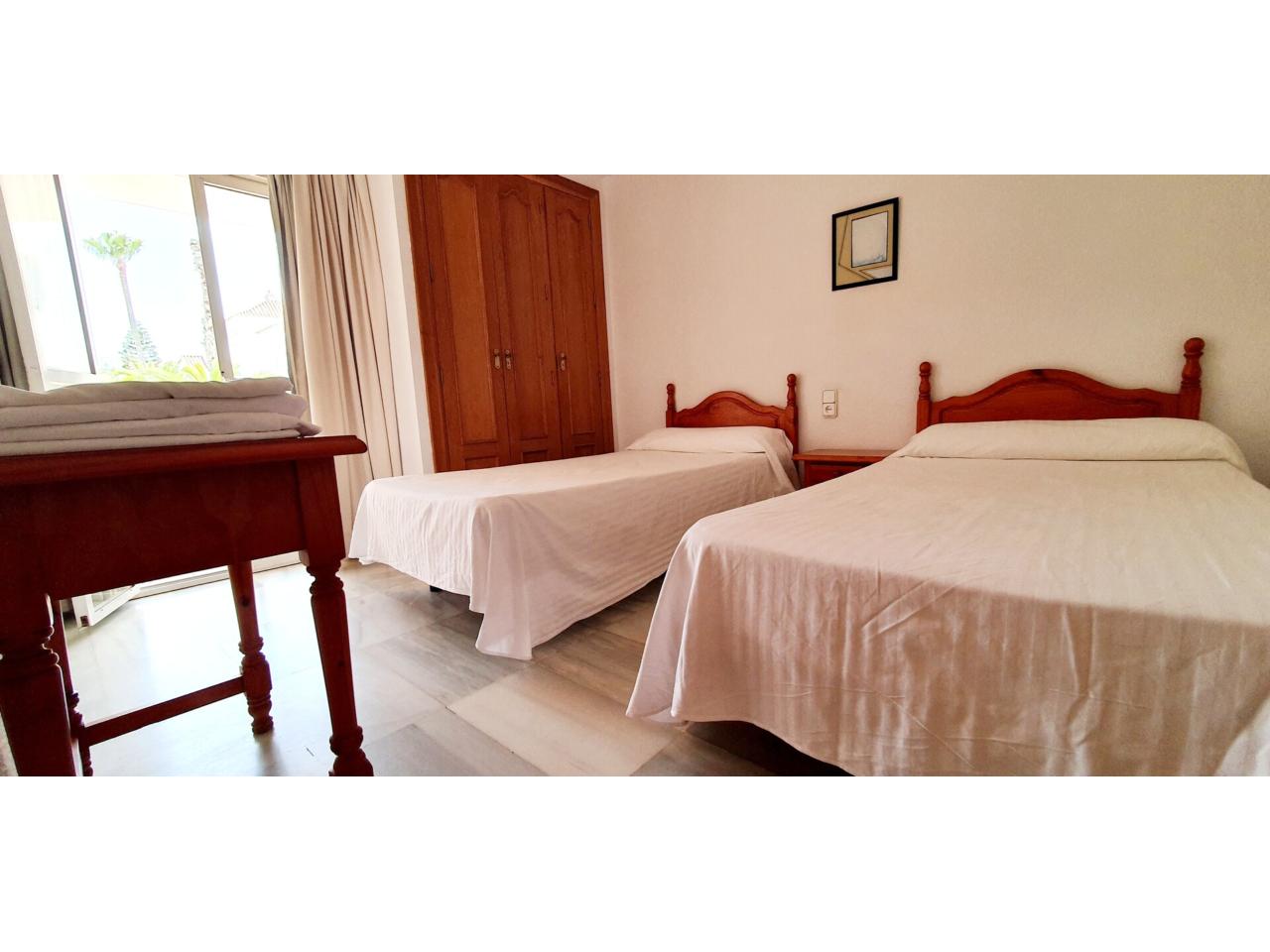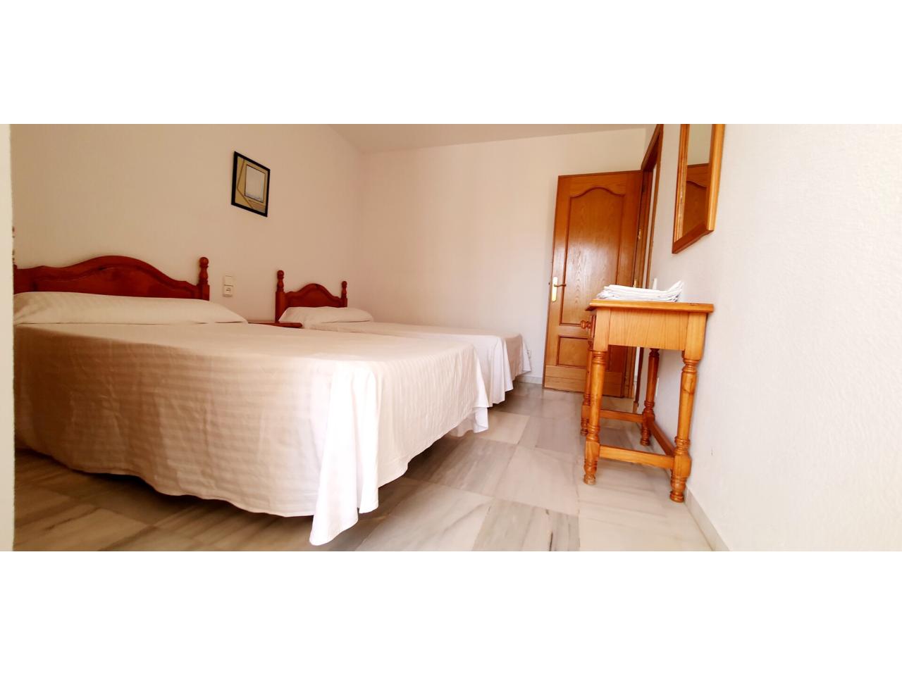 Un sencillo pero correcto baño y un dormitorio de gran capacidad completan este encantador apartamento situado en el primer piso del edificio, en una muy soleada primera planta. El dormitorio alberga un armario empotrado y acceso a la terraza. De dimensiones suficientes para dos camas grandes.